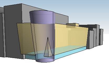Por ejemplo, podemos modelar una masa con la forma de los edificios de al rededor de donde queremos realizar un proyecto. Podemos obtener los datos de perímetro y altura de diversas fuentes como el catastro.