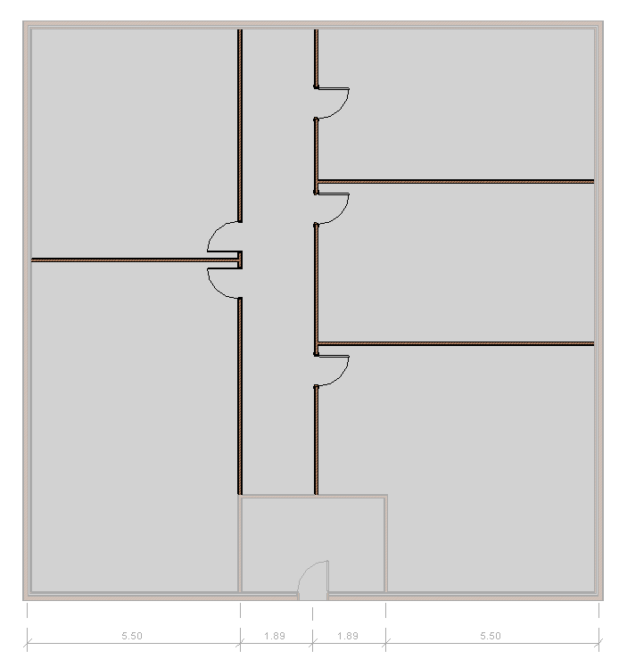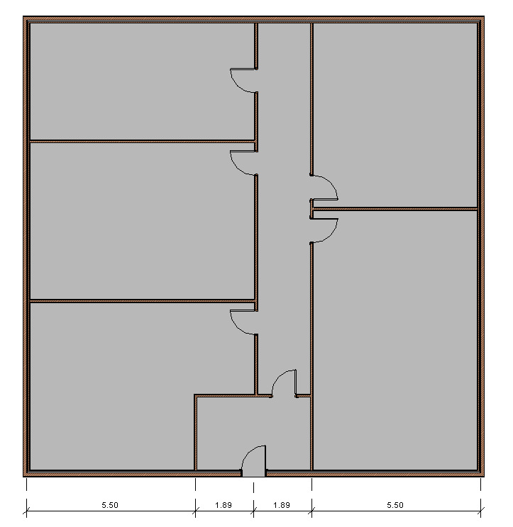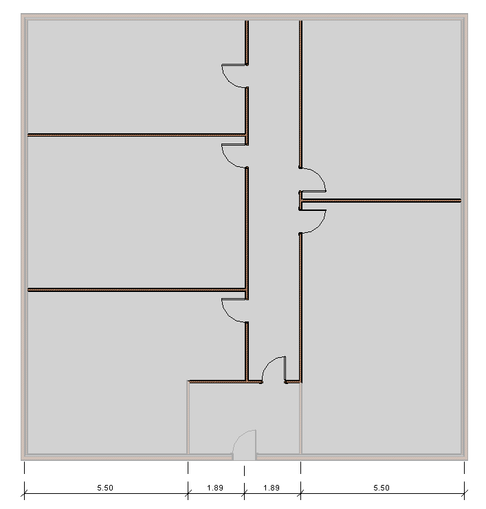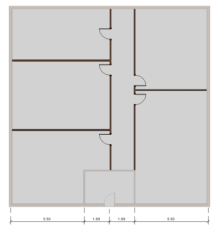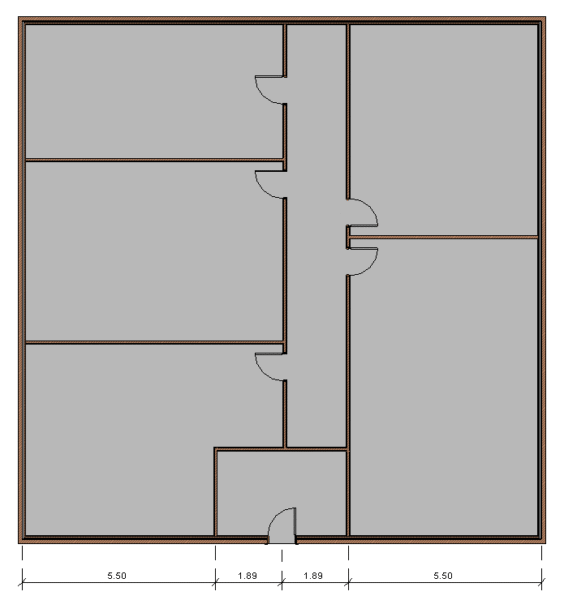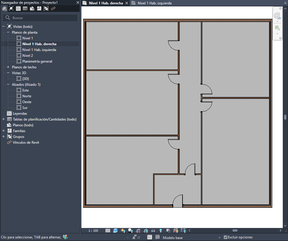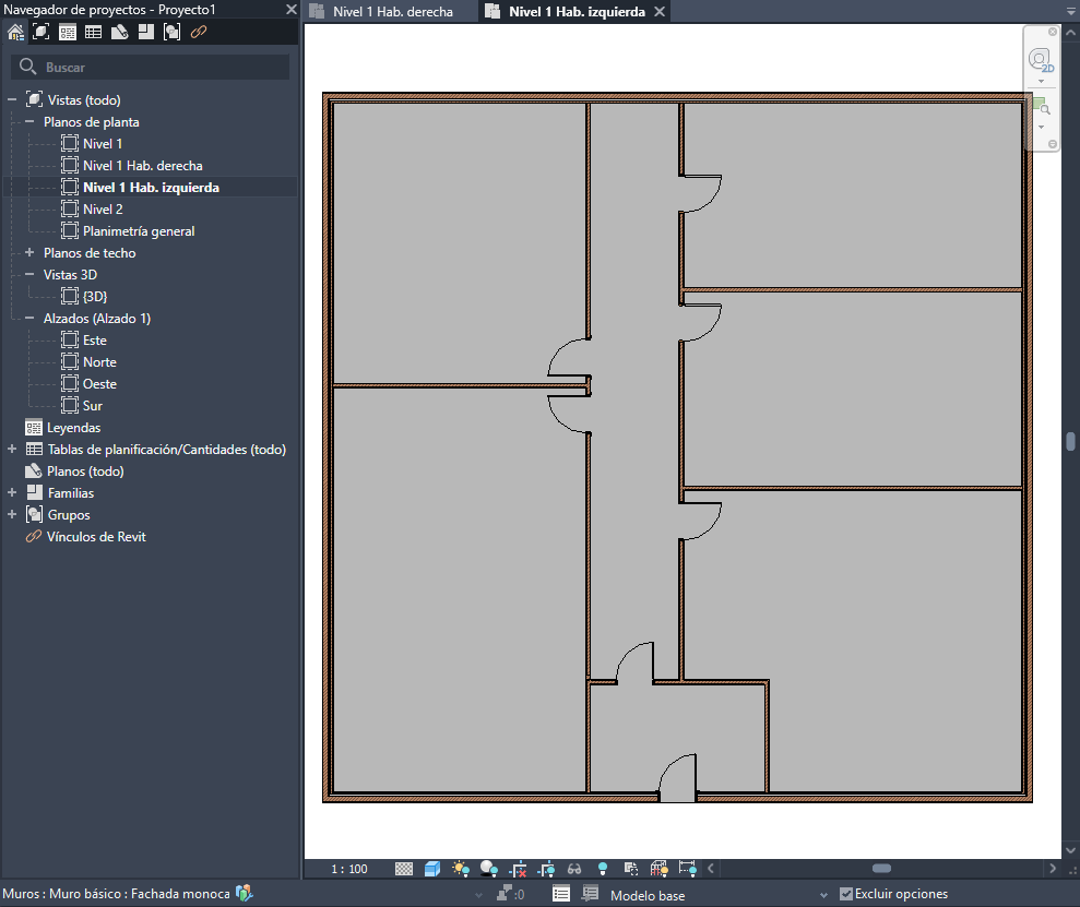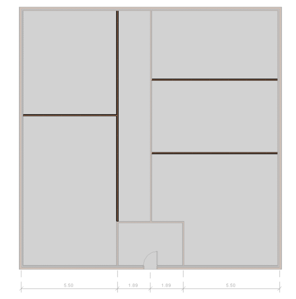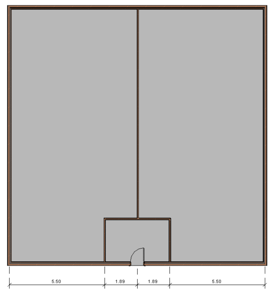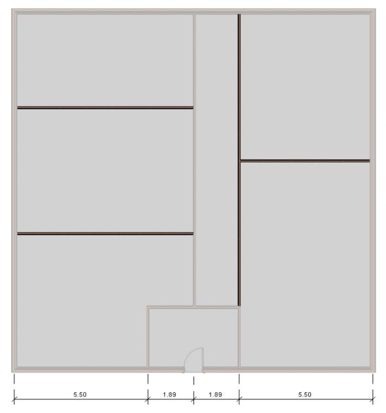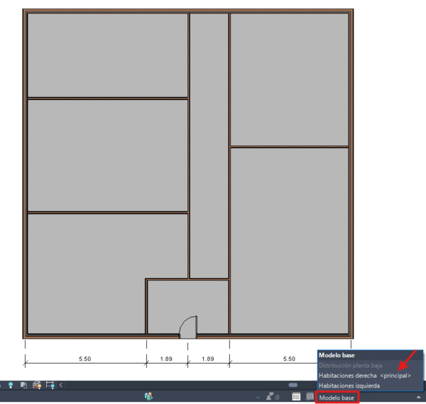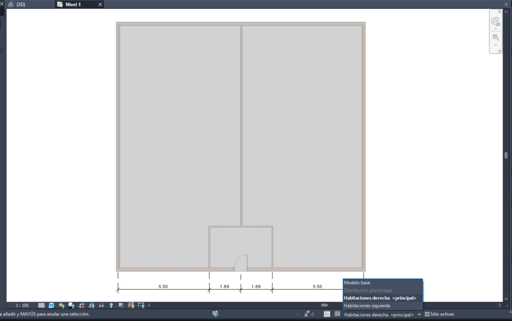 Siguiendo con el ejemplo anterior, tendremos como modelo base la planta baja de una vivienda, sin divisiones interiores a excepción de un pequeño vestíbulo y el muro que separará la parte de las habitaciones de las zonas comunes.