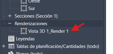 Si guardamos el renderizado en nuestro proyecto nos aparecerá en el navegador de proyectos en el apartado de «Renderizados»: