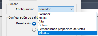 • Calidad: nos permite seleccionar la calidad que queremos obtener en nuestra imagen renderizada. Si pulsamos en ella nos aparecerán las siguientes opciones:
