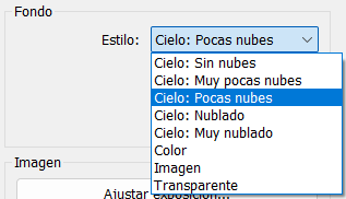• Fondo: podemos elegir el clima a la hora del renderizado o incluso si queremos insertar un fondo personalizado como un cielo, por ejemplo.