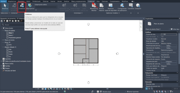 Como ya hemos comentado anteriormente, el principal objetivo de crear subproyectos y tener un modelo central y varios locales, es poder colaborar entre varias personas en la realización del modelo. También hemos visto que cada subproyecto puede tener un propietario distinto y cada uno puede otorgarnos o no permiso para editar y/o visualizar el contenido del mismo.