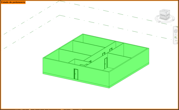 Si, por ejemplo, activamos la visualización por «Estado de pertenencia» nos aparecerá todo en verde ya que por el momento todo ha sido creado por el mismo usuario (y propietario). Si hubiera elementos modelados por otro propietario aparecería del color que esté establecido, en este caso rojo: