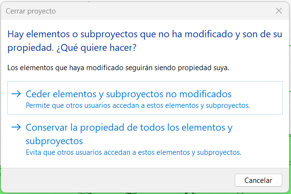 Definir si quieres ceder automáticamente los subproyectos o elementos que no hayas modificado.